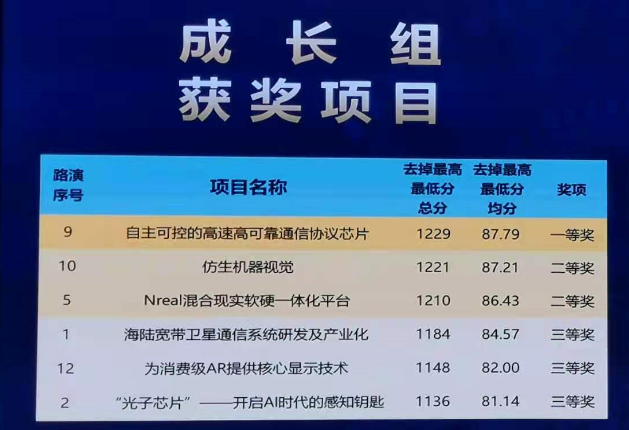 经过现场激烈的角逐,国科青岛绍祎培训机构有限公司的“自主可控的高速高可靠通信协议芯片项目”在总决赛中最终脱颖而出,以总分1229分的成绩斩获成长组第一名。